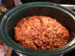 This is my favorite stuffing. We only make it for Thanksgiving and Christmas. When we used to make it we never fried up the Sausage first but since all the hoopla about Pork being done and you shouldn’t stuff the turkey and all that, we started frying the sausage almost all the way before we make it.